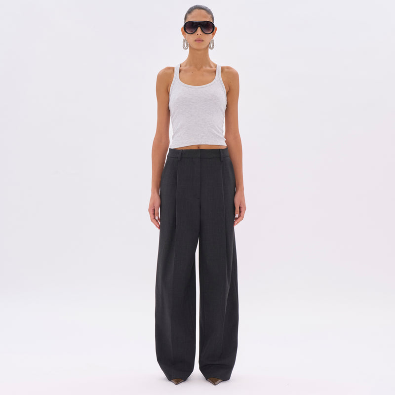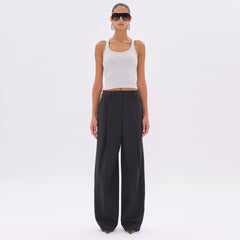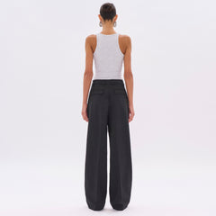 Wool blend wide-leg trousers with high waist and stretched pleats.
