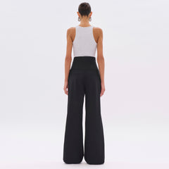 Wool blend trousers with super high waist, corset-style waistband, wide leg and relaxed fit.